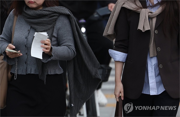 때 이른 추위가 22일 오전까지 이어지겠다. 이날 아침 중부지방을 중심으로 곳곳의 기온이 5도 아래로 내려갔다. 새벽 강원 설악산은 기온이 영하 0.1도를 기록하기도 했다. 경기 파주는 2.5도, 충남 서산은 4.3도, 서울은 6.6도, 대전은 7.1도까지 떨어졌다. 오전 8시 현재 주요 도시 기온은 서울 7.7도