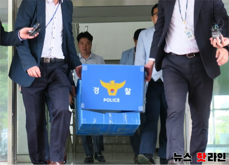 2019년 7월 11일 인천지방경찰청 지능범죄수사대가 인천상수도본부를 압수수색을 하는 모습