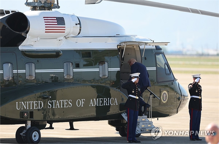 APEC 마린원 탑승하는 트럼프 미국 대통령
