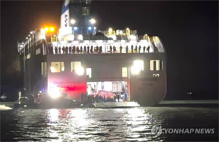 제주에서 전날 오후 4시 45분께 승객 246명, 승무원 21명 등 267명을 태우고 목포를 향해 출발한 퀸제누비아2호는 같은 날 오후 8시 16분께 신안군 장산도 인근 무인도인 족도 위에 선체가 절반가량 올라서며 좌초했다.