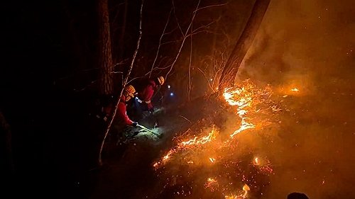 산림 당국에 따르면 장비 69대와 진화인력 338명을 투입해 밤사이 지상 진화에 집중했으나 산세가 험해 진화에 어려움을 겪었다.