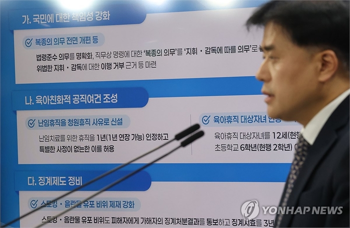 앞서 최동석 인사혁신처장은 지난달 국정감사에서 "국민에게 충직한 공직사회 구현을 위해 명령과 통제에 기반한 복종의 의무를 개선하고 상관의 위법한 지휘와 명령에 대한 불복 절차를 마련하겠다"고 밝힌 바 있다.