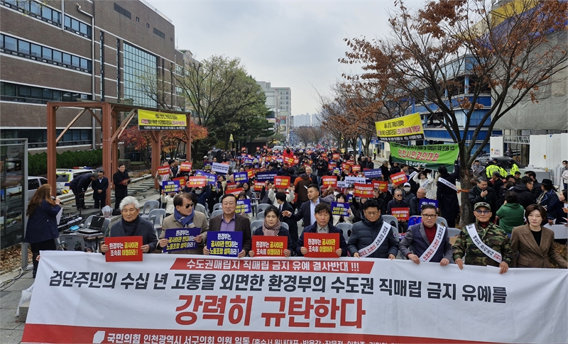 내년 1월 1일부터 예정된 수도권 생활폐기물 직매립 전면 금지 시행을 두고, 인천 시민들이 정부에 합의를 이행하라고 촉구하며 대규모 단체 행동에 나섰다.