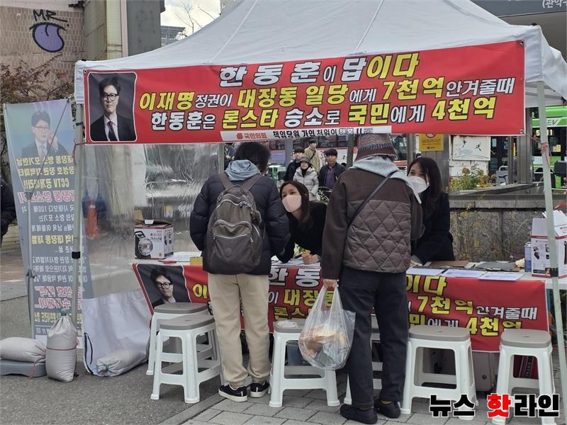 11월 26일 서울역1번출구앞에서 책임당원 지지자들이 당원가입행사하고 있다. 서울대학생 과잠입고 당원가입 관악구 지역민의 열띤 호응으로 당원가입하고 있다. 또 다른 서울대학생들이 부스에서 가입설명을 듣고 있다. 관악구의 한동훈 바람이 불고 있다. 학생들의 참여도가 높은 당원가입 부스 이날 책당가입 21명가입 서울대생 책당가입 4명 한동훈 바람이 불고 있다.매주 수요일 같은 장소에서 행사한다'고 행사주최자가 밝혔다. 42 0 뉴스 핫라인 뉴스 핫라인 lha672434@gmail.com 뉴스 핫라인의 기사 더보기 저작권자 ⓒ 뉴스 핫라인, 무단 전재 및 재배포 금지