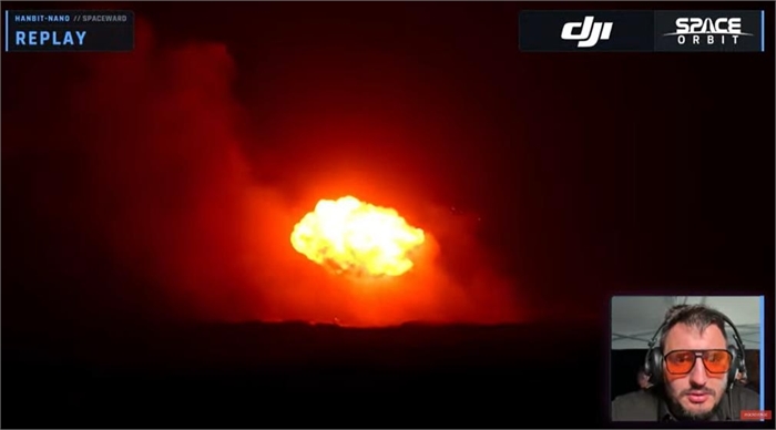한빛-나노 발사 유튜브 중계에서 확인된 지상 폭발 [유튜브 캡처]
