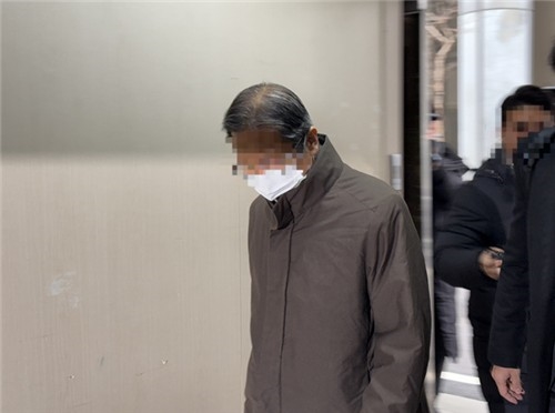 28일 오전 9시 55분께 서울 서대문구 경찰청사로 들어서는 천주평화연합(UPF) 전 부산지회장이자 한일해저터널 연구회 이사인 박모씨.