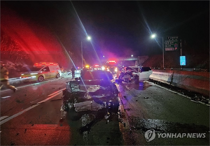 전북경찰청과 전북자치도소방본부 등에 따르면 이날 오전 1시 23분께 서해안고속도로 상행선 고창 분기점 인근에서 차량 2대가 부딪혔다.
