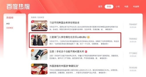 바이두 '실검' 1위 오른 이재용 삼성전자 회장 [바이두 캡처]