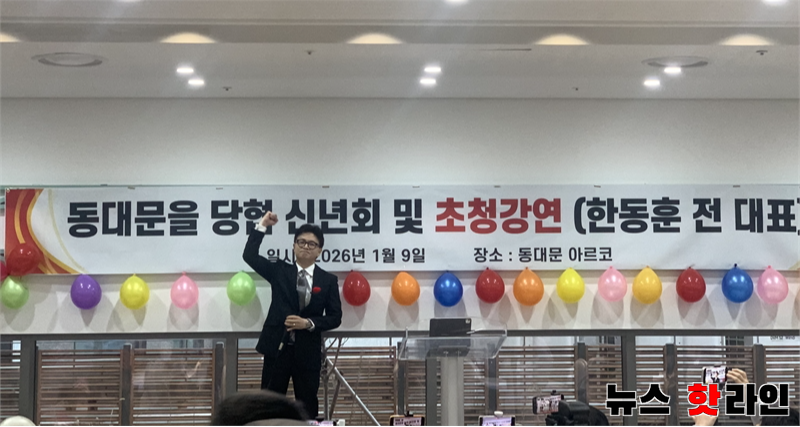 동대문구 청량리 L65 아르코에서 지지자 약 2천여명이 참석한 가운데 열린 동대문을 당협 신년회 및 한동훈 전 대표 초청강연에서 한동훈 전 대표가 지지자들에게 인사를 하고 있다. 박영훈 기자 2026.1.9 cjsgkwp0@gmail.com