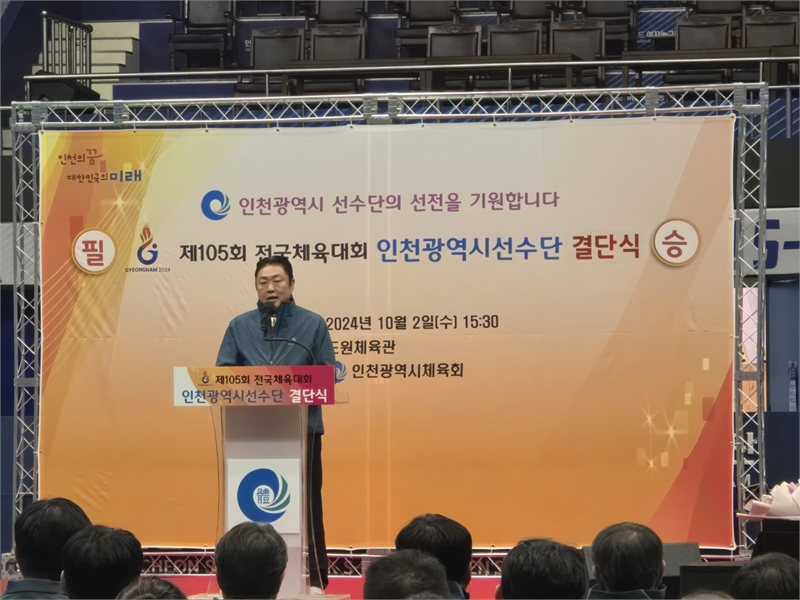 인천시의회 문화복지위원회 신충식 제1부위원장(국·서구4)이 지난 2일 인천시립도원체육관에서 개최된 ‘제105회 전국체육대회 인천광역시 선수단 결단식’ 현장을 찾아 선수들을 격려했다.
