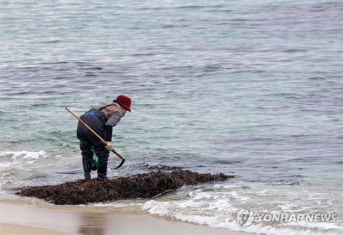 봄의 선물…자연산 미역 채취 (연합뉴스 제공)