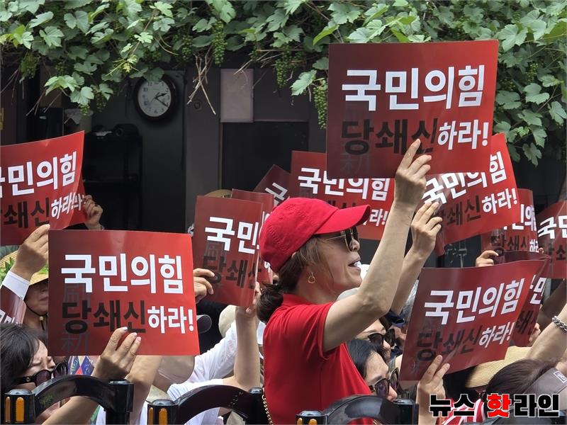 6월17일 오후 2시 국민의힘 당사앞에서 당쇄신하라고 외치는 이민구 책임당원 깨시연대표 6월 17일 국민의힘 당사에서 책임당원 천여명이 모인 가운데 국힘의힘이 살길은 쇄신밖에 없다고 목놓아 외쳤다 뜨거운 태양아래 책임당원은 당 쇄신하라 외치다. 쇄신하라 쇄신하라!! 외치는 극민의힘 책임당원들 대구에서 온 책임당원 한포TV 한 여름의 뜨거운 날씨에 모인 책임당원 국민의힘이 살길은 탈윤밖에 없다고 외치는 강수산 책임당원 함은순 책임당원 열변을 토하고 있다 대구 당원 한포티비는 조직이 중요하다 강조하다. 213 0 뉴스 핫라인 김미숙 기자 lha672434@gmail.com 김미숙 기자의 기사 더보기 저작권자 ⓒ 뉴스 핫라인, 무단 전재 및 재배포 금지
