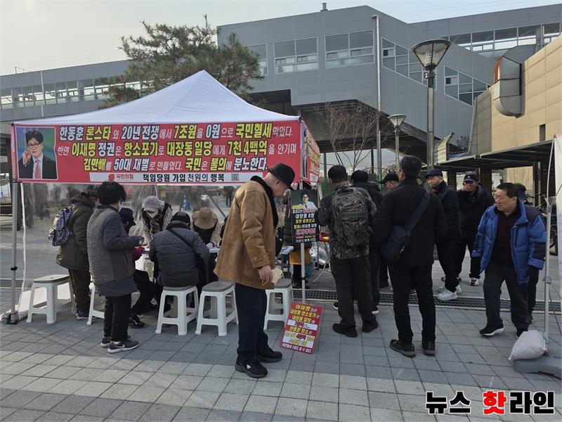 핫포토 핫라인 포토] 소요산에 부는 한동훈 바람 뉴스 핫라인 승인 2025.12.01 07:24 | 최종 수정 2025.12.01 07:28 3 소요산역 중앙차로에 한동훈 론스타 승소와 대장동 7천억 현정권 비판 현수막이 게첩 횡단보도앞에서 현수막 글귀를 보고있다. 멀리서 보이는 당원가입부스 책당가입을 위해 1타강사 한동훈의 론스타소송 완승공식 배너를 읽어보시는 동두천 시민 책당가입 지난주 하시고 친구 모시고 온 동두천 시민 소요산 산행하는 당원가입하는 동두천시민 이른 아침 부스에 찾아오시는 시민들 오늘도 책당가입 부스는 북적북적 했다고 전해왔다. 38 0 뉴스 핫라인 뉴스 핫라인 lha672434@gmail.com 뉴스 핫라인의 기사 더보기 저작권자 ⓒ 뉴스 핫라인, 무단 전재 및 재배포 금지