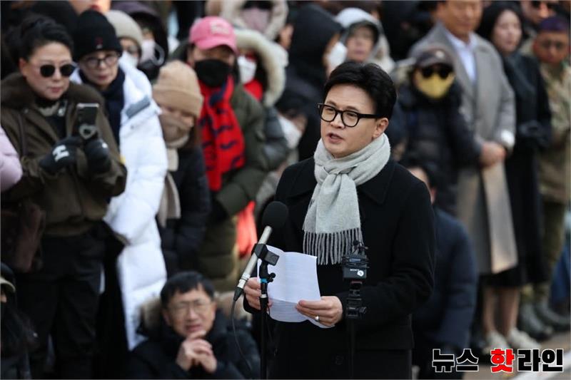 한 전 대표는 "그날 밤 우리 국민의힘은 바로 저 좁은 문을 통해서 어렵사리 국회로 들어가 계엄을 해제하는 데 앞장섰다"며 "제가 그날 밤 계엄 발표를 보자마자 했던 '비상계엄 선포는 잘못된 것이다. 국민과 함께 막겠다'라는 메시지는 개인이 아니라 국민의힘의 당대표로서, 지지자들과 동료들의 마음을 담아 공식적으로 냈던 것"이라고 했다.한 전 대표는 당시를 회상하며 "민주당의 폭거는 극에 달하고 있었다. 헌법 정신을 저버리고 오직 머릿수로 밀어붙이면 된다는 저열한 정치 논리로 스물 두 번의 탄핵과 함께 국정을 마비시켰다"며 "정말 안타까운 것은 이재명 (당시 민주당) 대표에 대한 유죄 판결이 줄줄이 예정돼있던 상황이었기 때문에 우리가 버텨내기만 하면 새로운 국면이 열릴 것이었다는 점"이라고 강조했다.